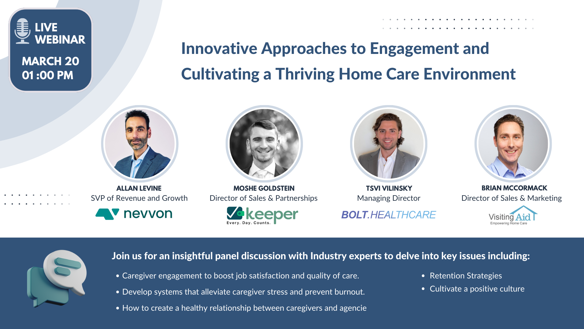 Watch an insightful panel discussion with Industry experts from Nevvon, Keeper, Bolt and Visiting Aid, each with a unique perspective, as we delve into key issues including: